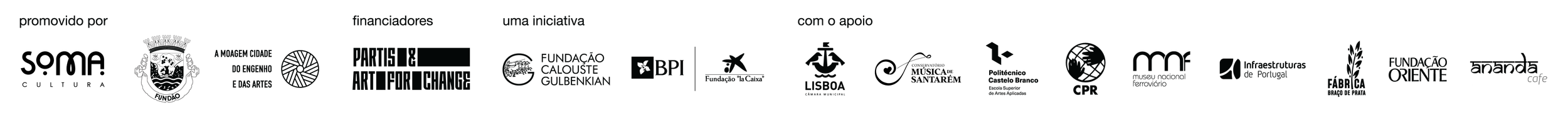 Parceiros: Infraestruturas de Portugal, Museu Nacional Ferroviário, Conservatório de Música de Santarém, ESART (Escola Superior de Artes Aplicadas, Castelo Branco), Centro Português de Refugiados (CPR), Agência para a Integração, Migrações e Asilo (AIMA), Alix Didier Sarrouy (Sociólogo das Artes – NOVA.FCSH), Fundação Oriente / Ananda Café Fundão